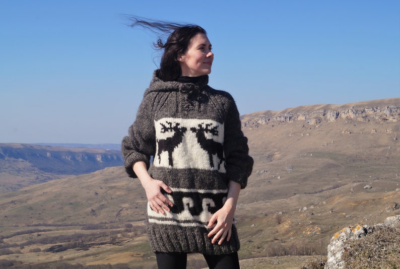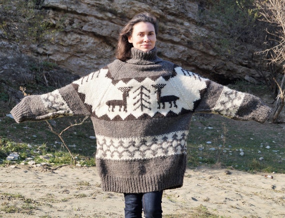 Christmas Reindeer Sweater Organic Wool Sweater Oversized Chunky Pullover Russian Thick Wool Sweater Hand Knitted Jumper Unisex Hoodie Clothing Sweaters Valresa Com