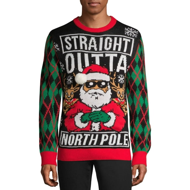 Holiday Time Holiday Time Men S Straight Outta North Pole Led Ugly Christmas Sweater Walmart Com Walmart Com