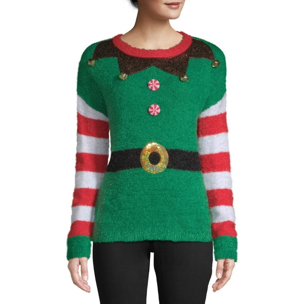 Holiday Time Holiday Time Women S Elf Ugly Christmas Sweater Sizes Vary Walmart Com Walmart Com